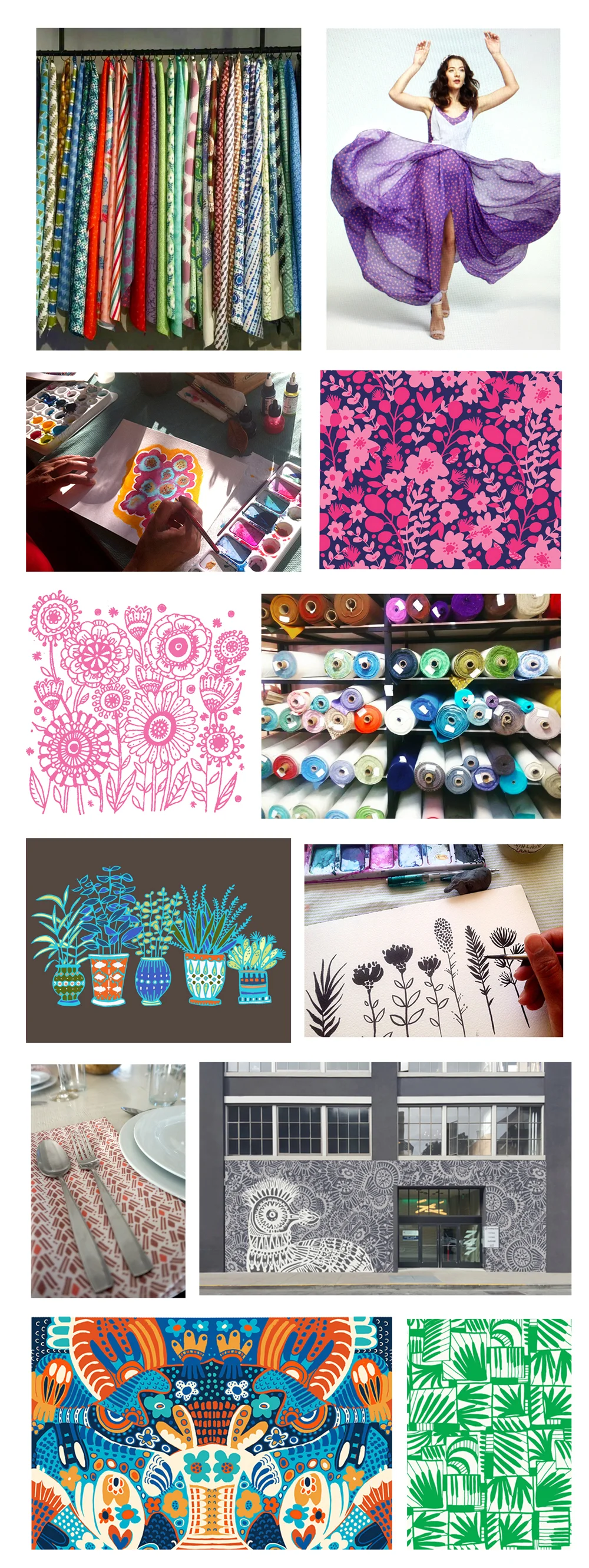 After 10 years in Advertising, I switched gears to focus on my passion for textile design. I graduated from the Institute for Textile Print Design in Berkeley, CA (formerly CA School of Professional Fabric Design) after completing a two-year intensive curriculum followed by an additional two-year apprenticeship program. During this time I honed many painting skills in various mediums and gained proficiency in both Photoshop and Illustrator.