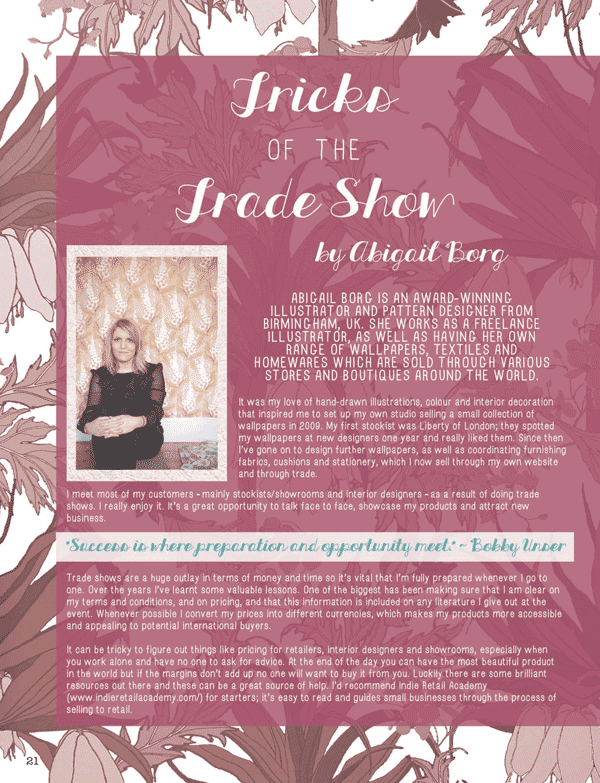 I've just been reading the latest issue of Make it in Design's Moyo Magazine. If you are a lover of all things patterntastic, then take a look through this great FREE online publication that the site offers. It has 112 pages of great interviews, insider tips, tutorials, Q&As with people in the textile industry, and more. Click here for access to Make it in Designs's Moyo Magazine's Issue 8 and prepare to get inspired.
