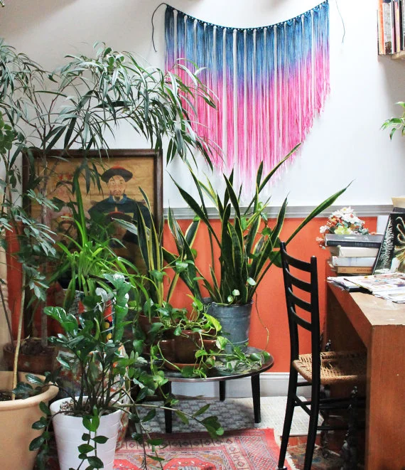 Huh? What?! Yes, you read right. As you may have noticed in the past few years, weaving and macrame have both made a resurgence in the crafting and art worlds. Whether you are hanging a colorful beauty on your wall, or a potted plant from the ceiling I love the texture and color these pieces add to a room. But would you try this latest trend for your head?